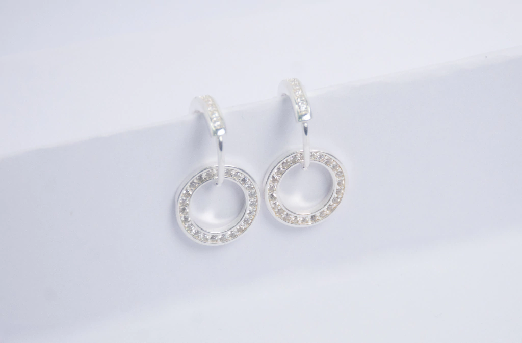 Argollitas Dobles con Cubic - Plata Italiana