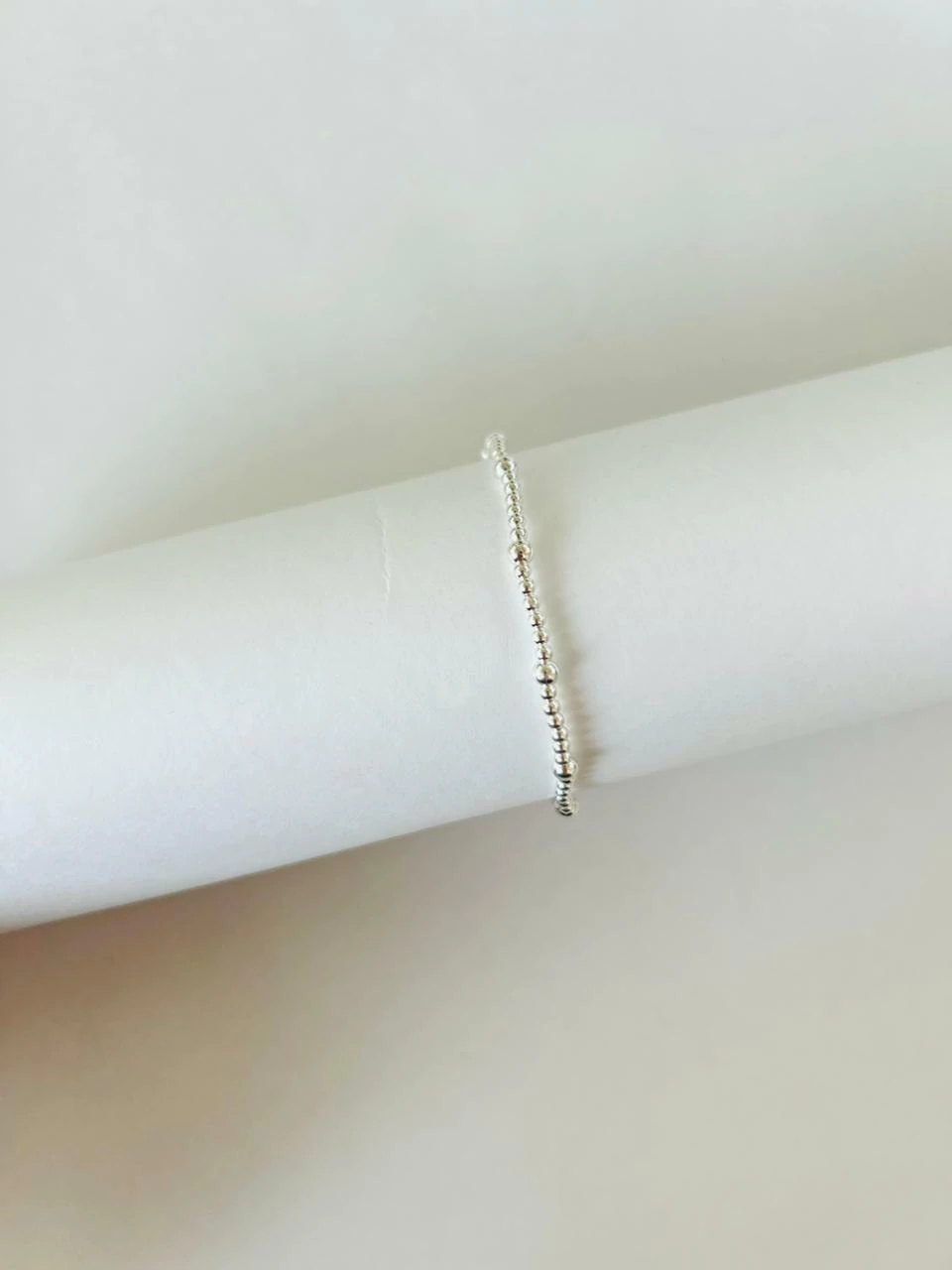 Descubra la elegancia de nuestra Pulsera Bolitas Elastica, meticulosamente elaborada en plata de alta calidad. Este exquisito accesorio está disponible en dos modelos de bolitas, permitiéndole elegir el que mejor se adapte a su estilo personal.