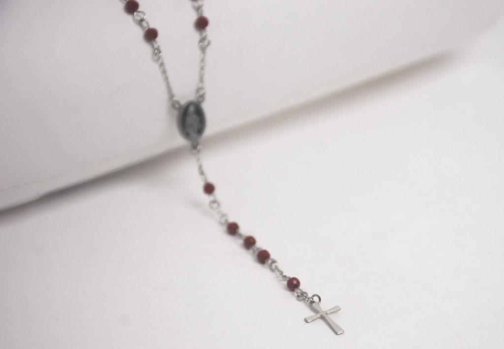 Descubra la elegancia y devoción del Rosario Rojo de Acero Quirúrgico. Con una longitud de 70 cm, esta pieza exquisita es ideal para llevar consigo, fusionando estilo y espiritualidad.